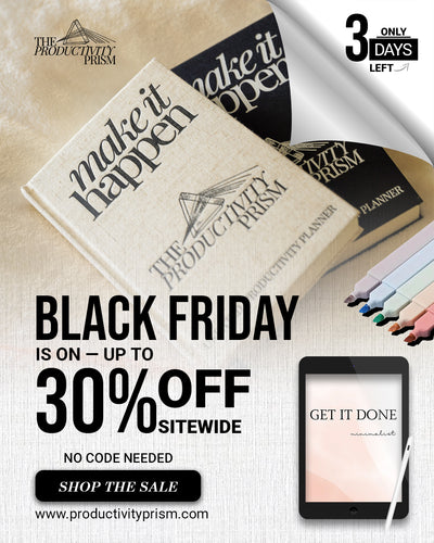 Plan your day from 6 am to 5 pm in half-hour increments, giving you structure and ensuring work-life balance.
